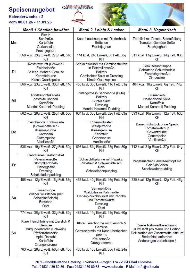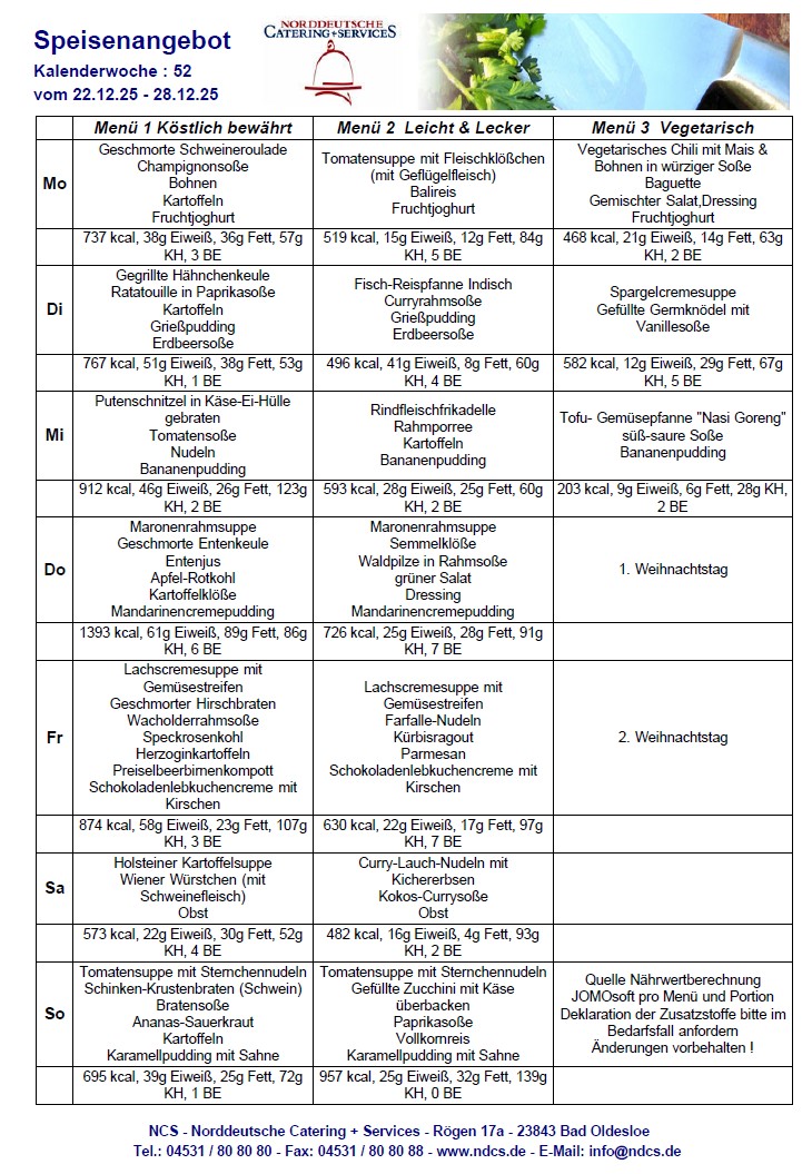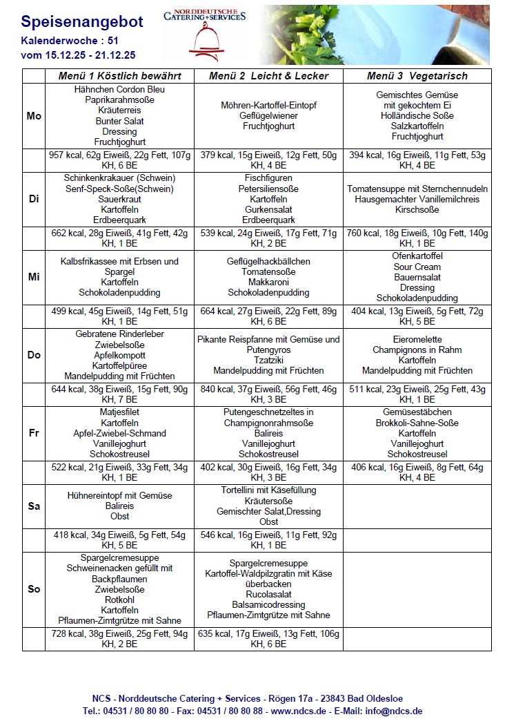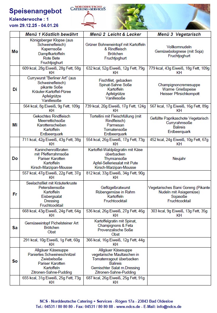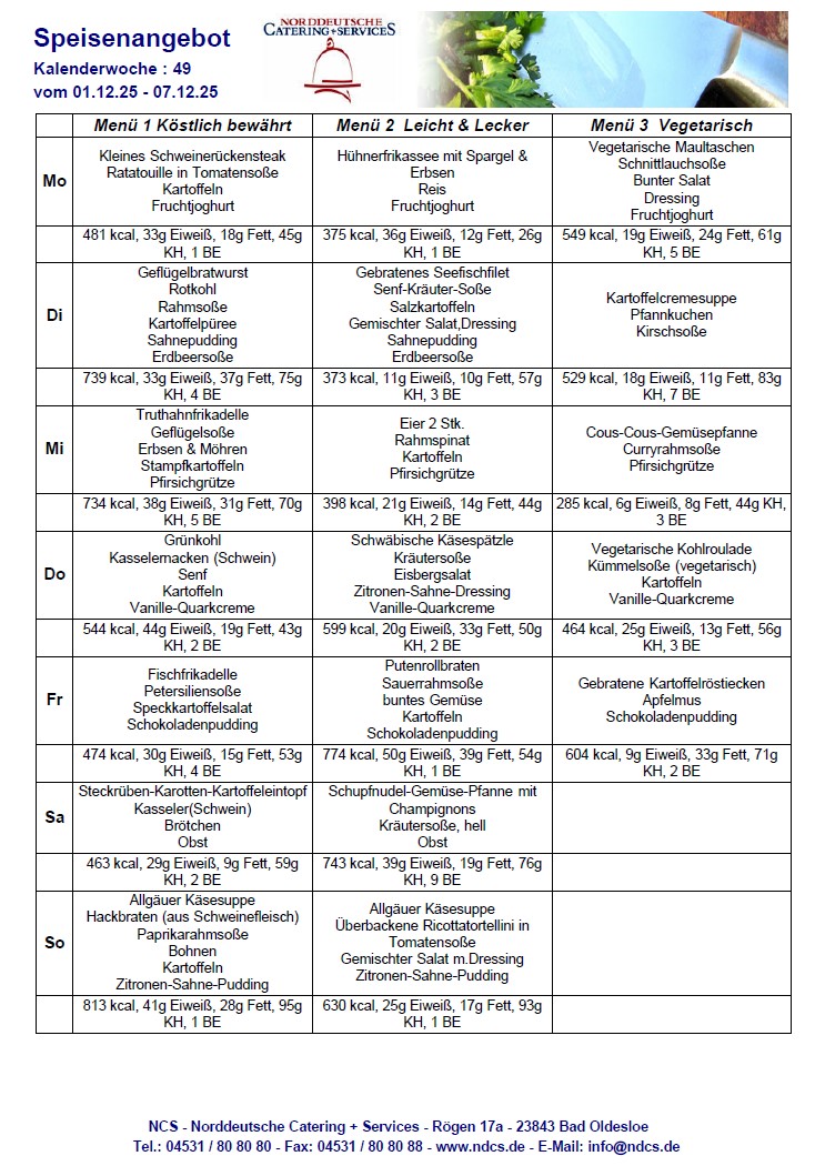 Aktuelle Speisen Immer frisch AKTUELLE SPEISEN.IMMER FRISCH.Unsere aktuellen Speisepläne zum Herunterladen KW 02 05.01.26 - 11.01.26 KW 50 08.12.25 - 14.12.25 KW 46 10.11.25 - 16.11.25 KW 01 29.12.25 - 01.04.26 KW 49 01.12.25 - 07.12.25 KW 52 22.12.25 - 28.12.25 KW 48 24.11.25 - 30.11.25 KW 51 15.12.25 - 21.12.25 KW 47 17.11.25 - 23.11.25